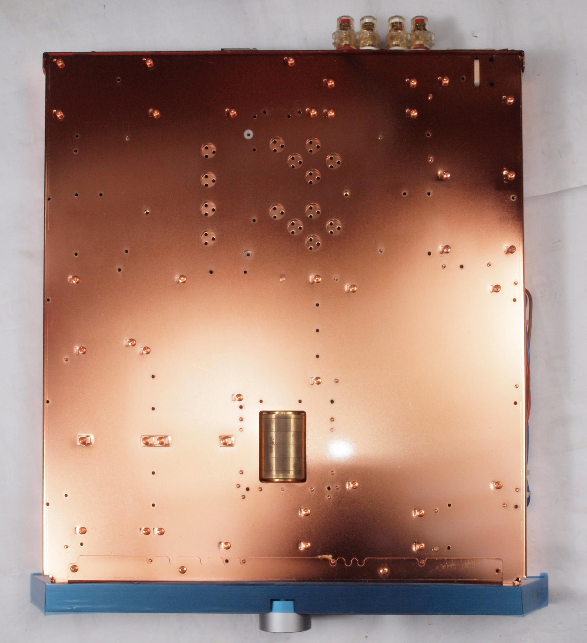 | C01. 修理中 部品・基板を取り去ったシャーシ裏。清掃後CRCで拭く。 |