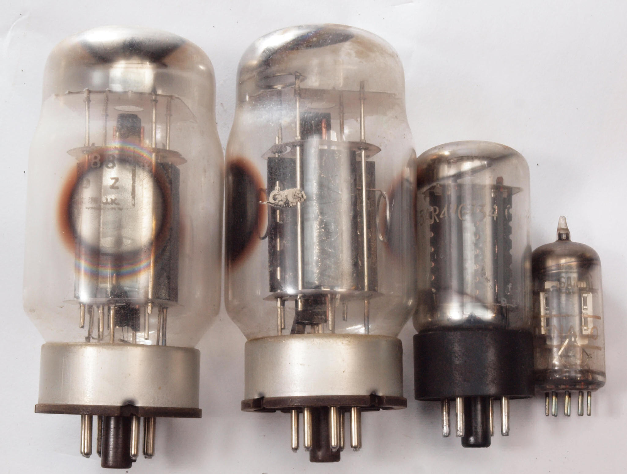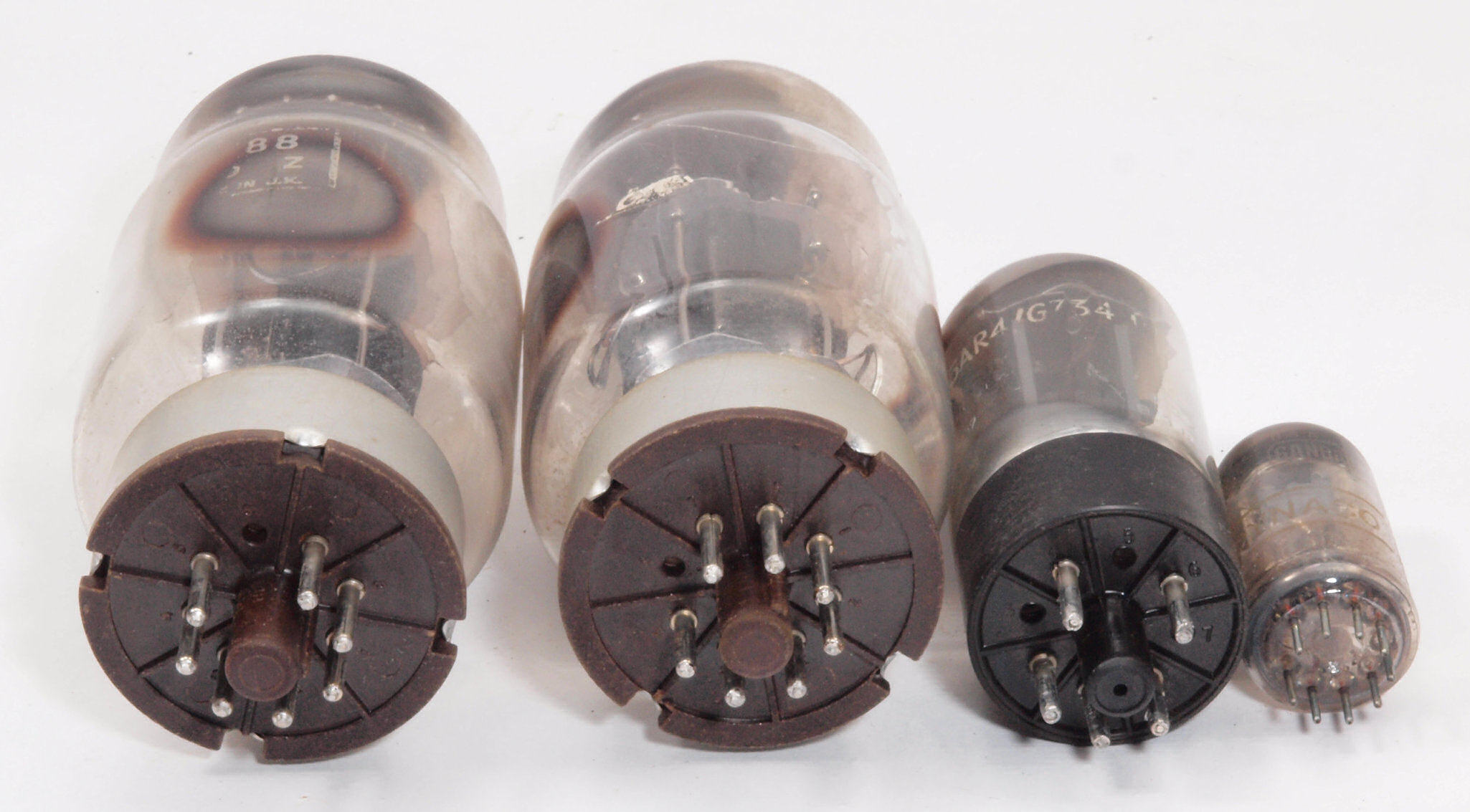 U1.  付属真空管、左から KT−88 1、2。 5AR4。 6AN8。