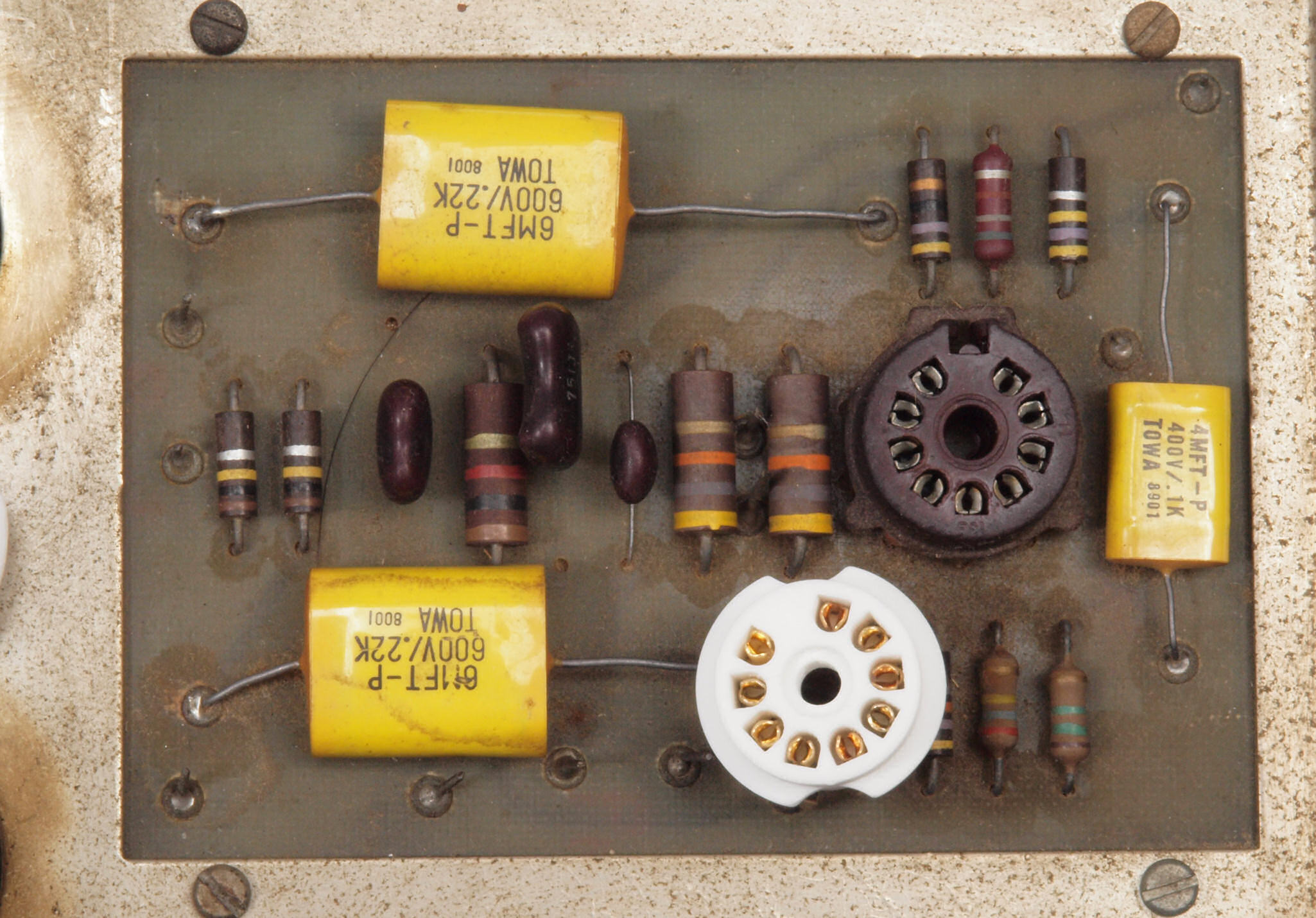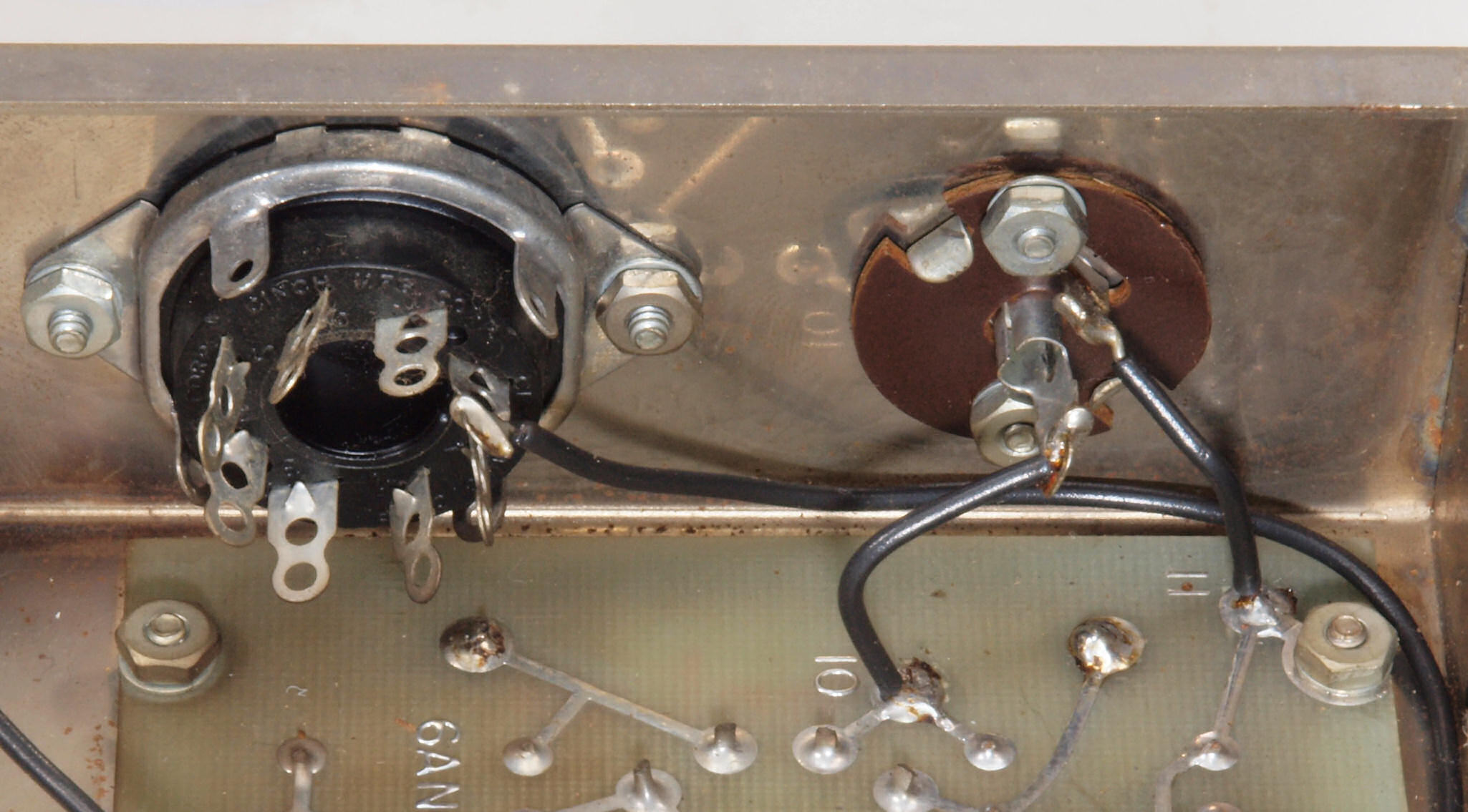 C21. 修理前 整流管5AR4ソケット付近。
