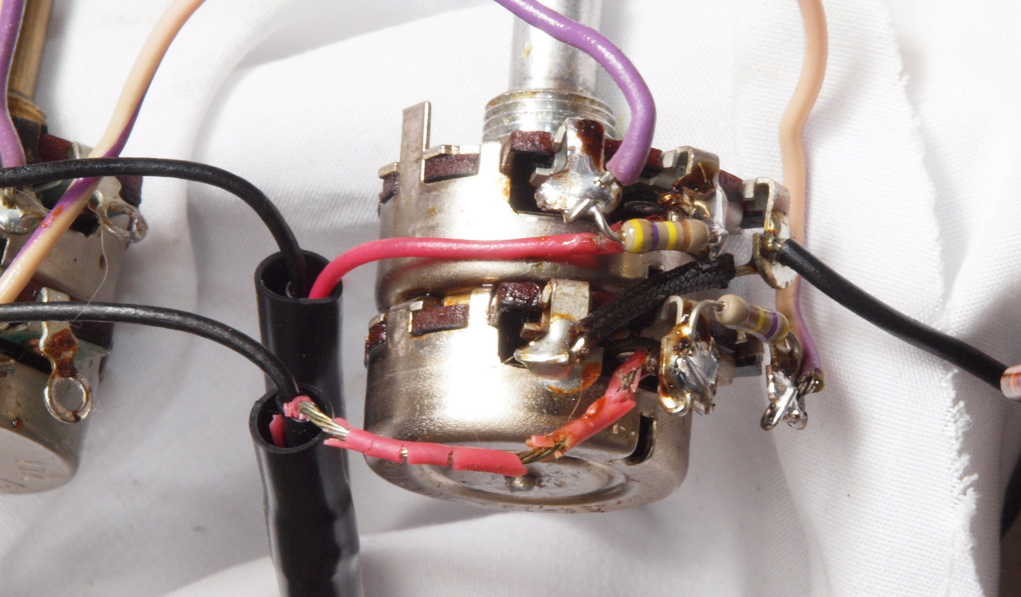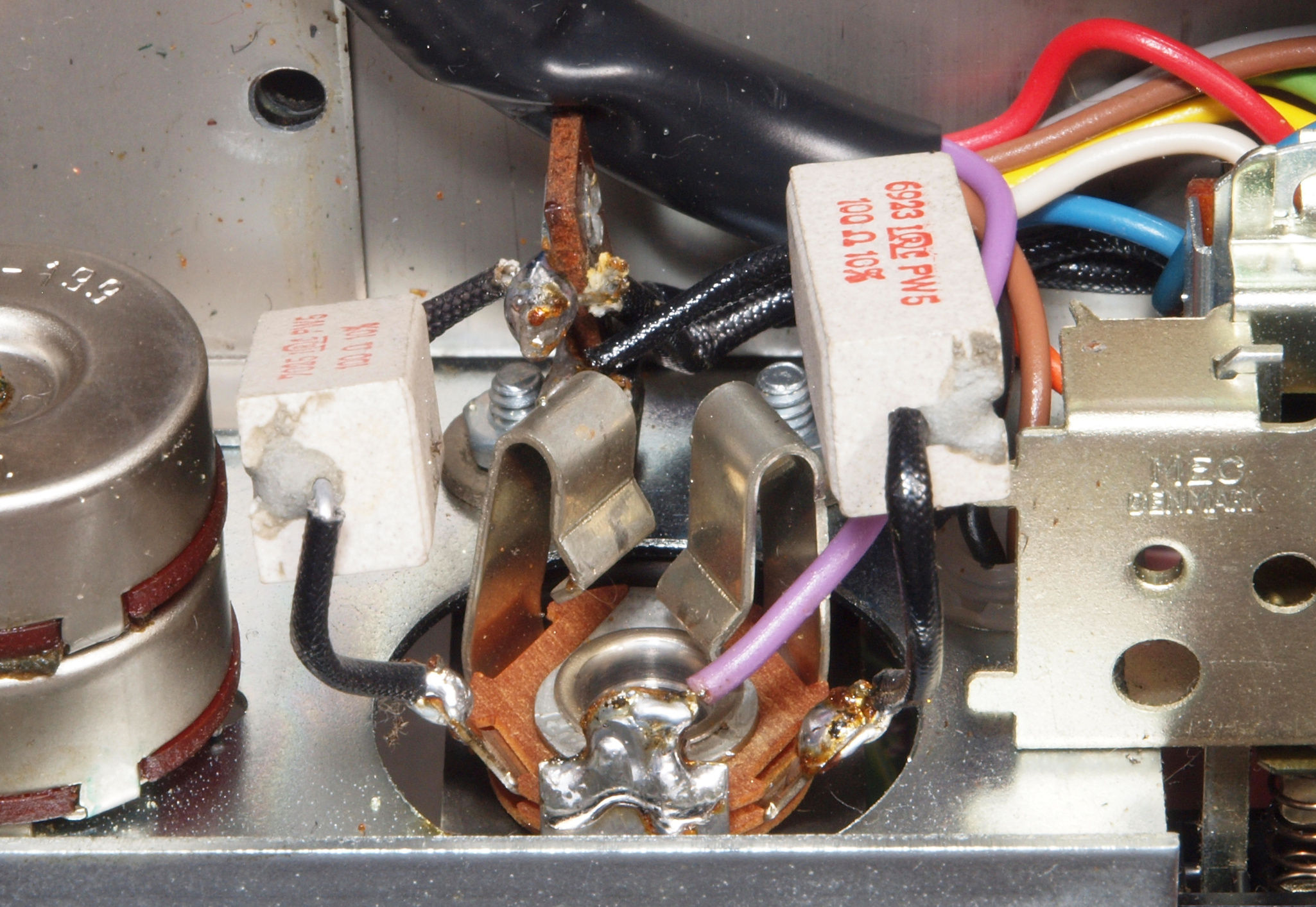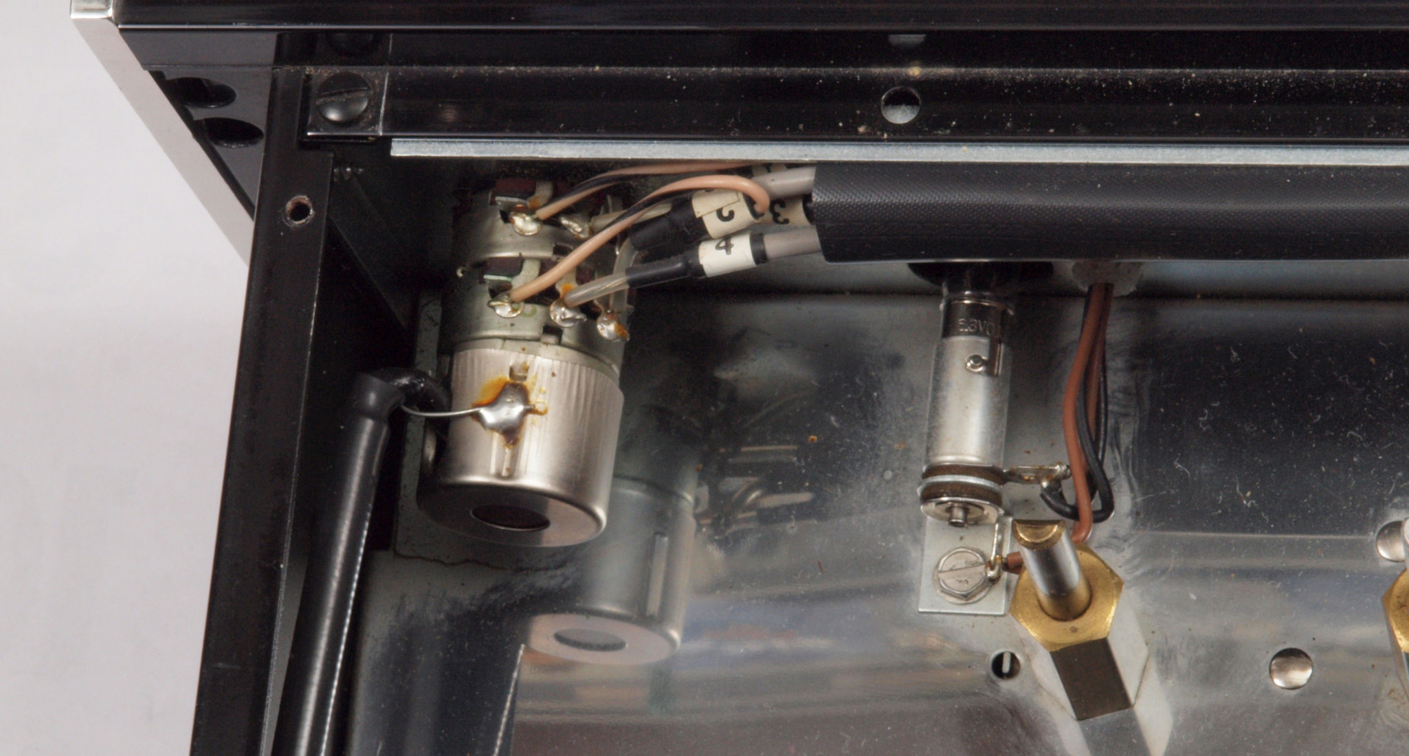 C63. 修理中 バランスVRの配線被覆が強力な接点復活材使用でボロボロ。