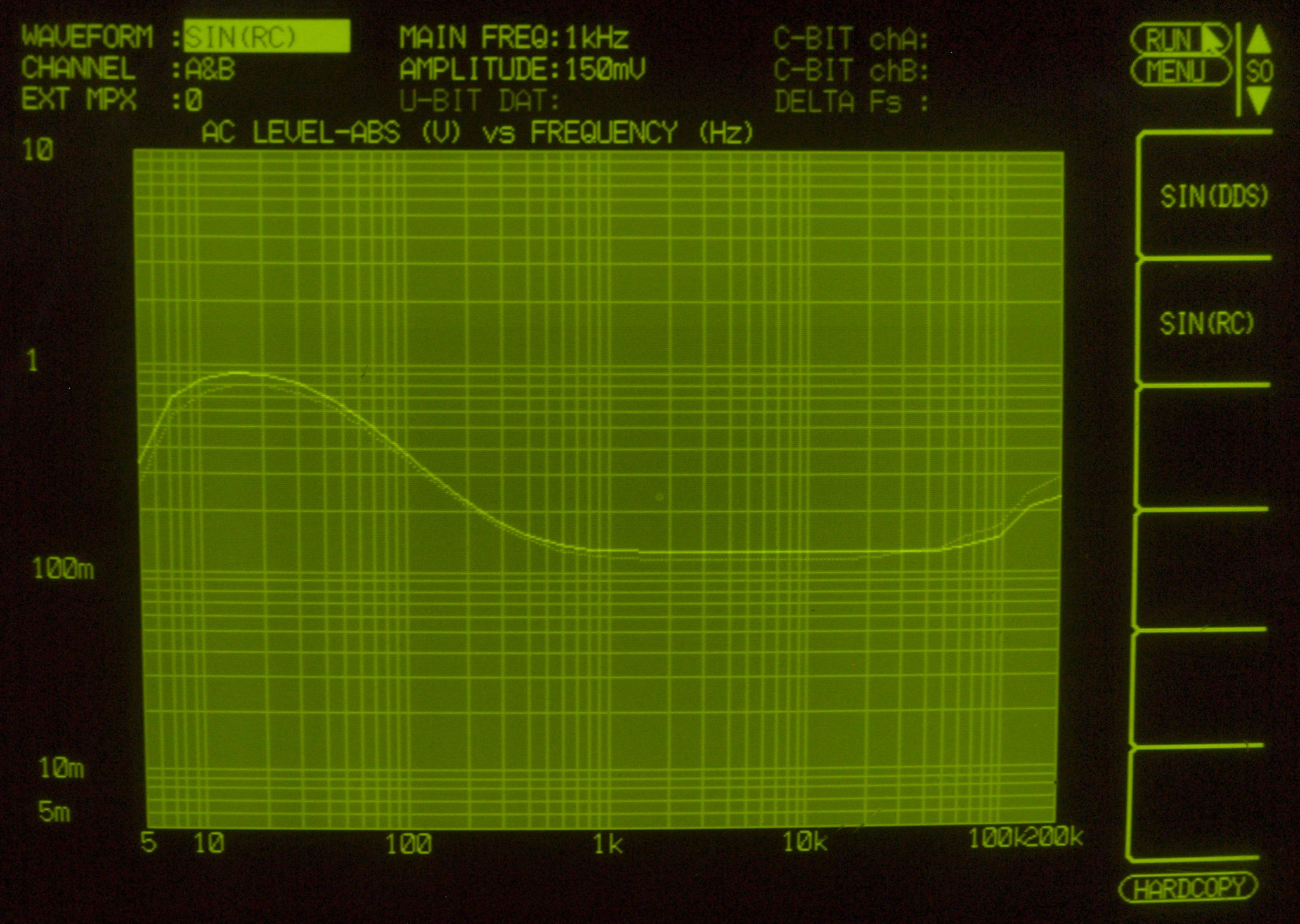 MM入力 入力電圧=2mV一定入力 VRはmax   左出力=薄(細い)色 右出力=濃い(太い)色