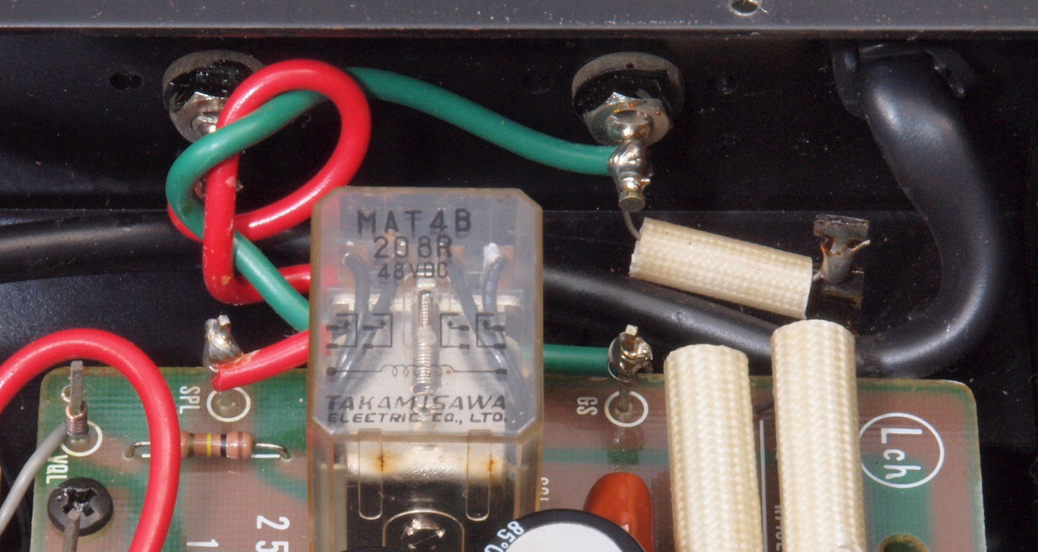 初段FET(電界効果トランジスター)、バランス・バイアス調整用半固定VR3個、SP接続リレー交換
