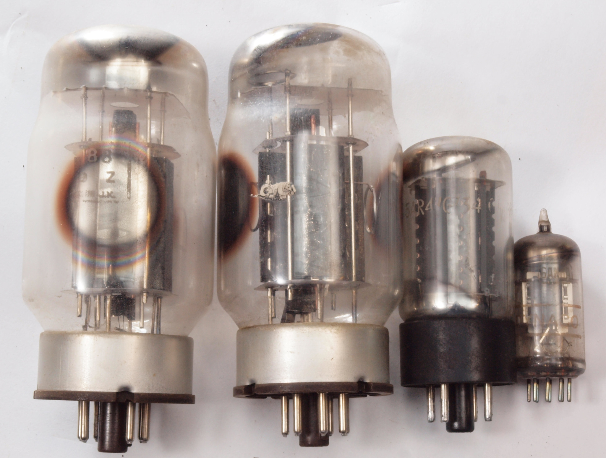 U1.  付属真空管、左から KT−88 1、2。 5AR4。 6AN8。