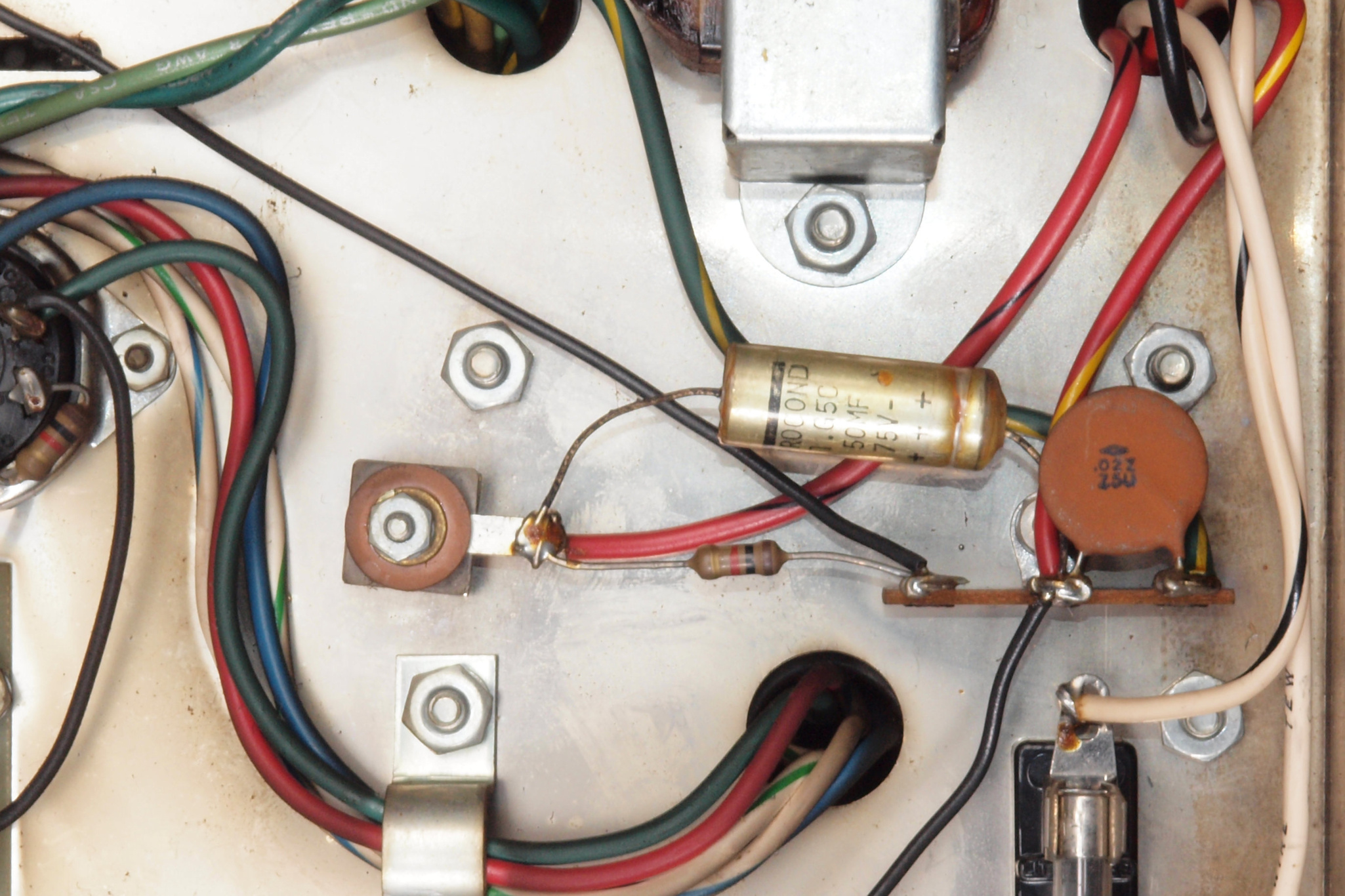 C21. 修理前 整流管5AR4ソケット付近。